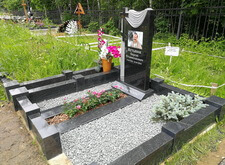 Затем приносим надгробье, предварительно укрепив на нём фотокерамику с изображением усопшего, устанавливаем его. Территорию участка засыпаем каменной крошкой, в цветник сажаем растения, в одном из углов места захоронения организовываем клумбу.